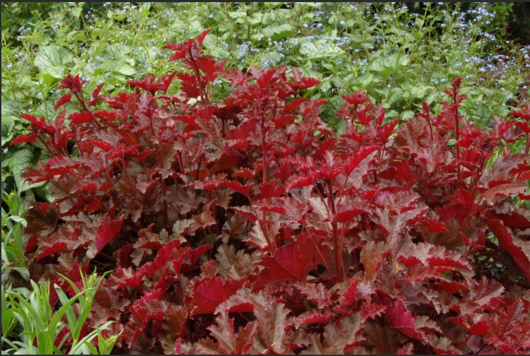 Чоколейт Раффлз отличается компактным размером и аккуратной формой куста, что делает ее идеальной для создания бордюров, альпийских горок и декоративных композиций. В период цветения гейхера радует мелкими, но многочисленными цветками, собранными в изящные соцветия на длинных цветоносах.
