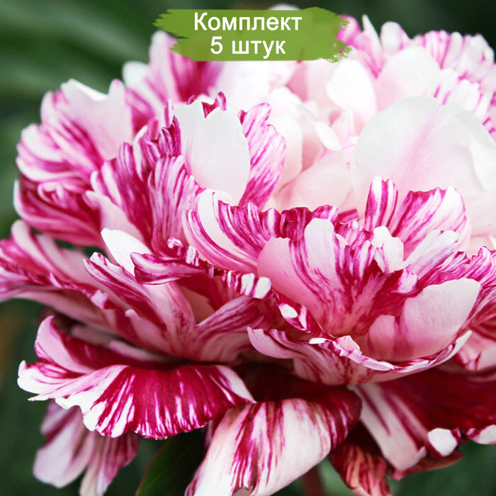 В комплекте – 5 крепких и здоровых саженцев, готовых к посадке. Добавьте в свой сад нотку элегантности и утонченности с пионов Candy Stripe!