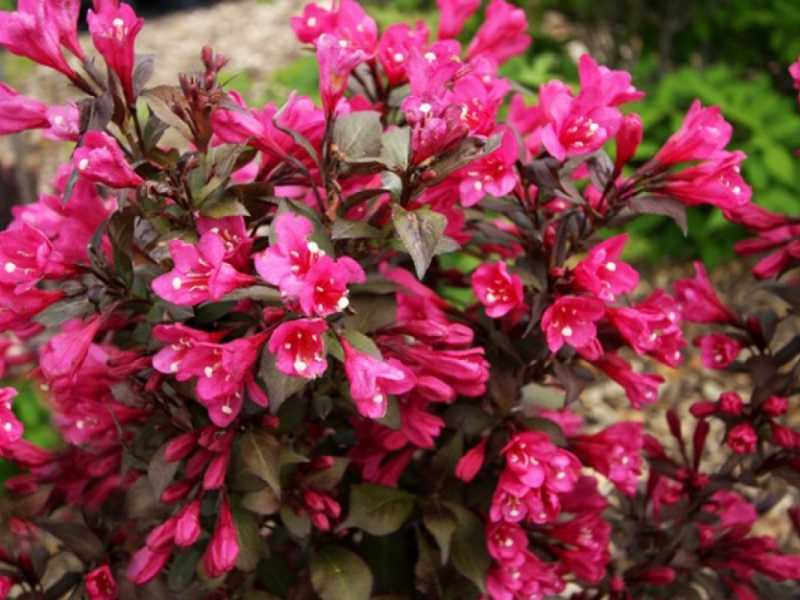 Вейгела садовая Минор Блэк (Minor Black) – это изысканный декоративный кустарник, который станет настоящим украшением вашего сада. Этот сорт отличается компактными размерами, достигая высоты до 1 метра, что делает его идеальным для небольших садов и ландшафтных композиций.